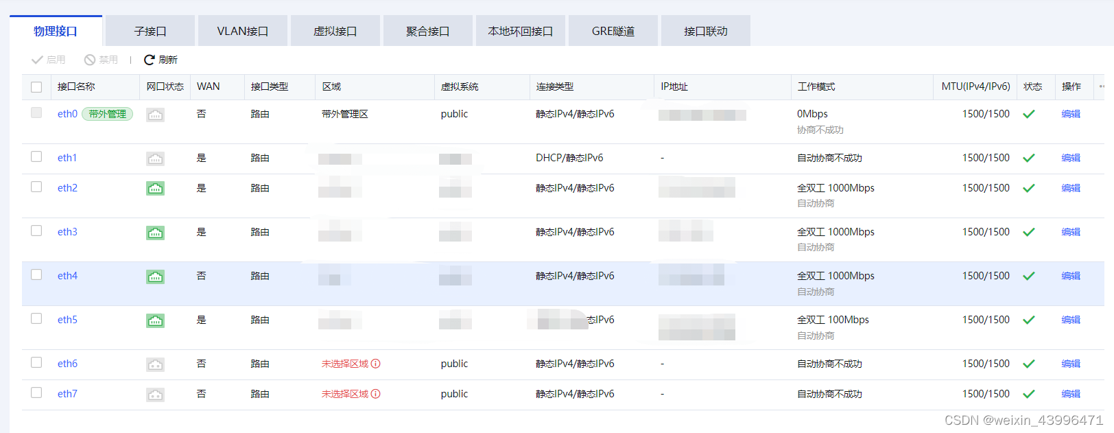 2、防火墙管理界面,选择“网络”,选择“接口”