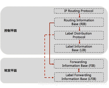 控制平面:IP路由协议->RIB(路由表)、LDP、LIB表