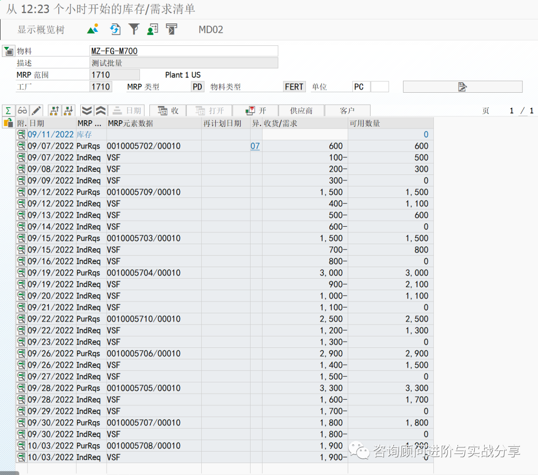 运行MRP结果