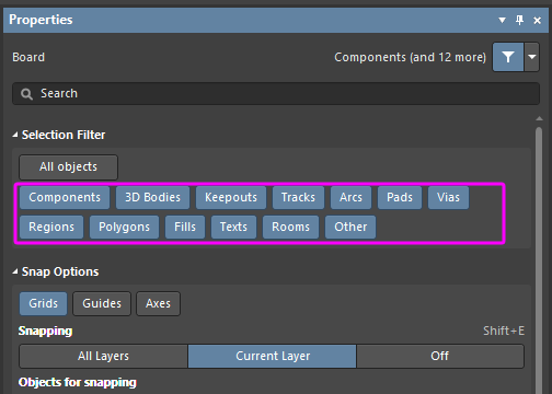 元器件无法选中原因(选择过滤器为勾选需要选择的对象导致):
