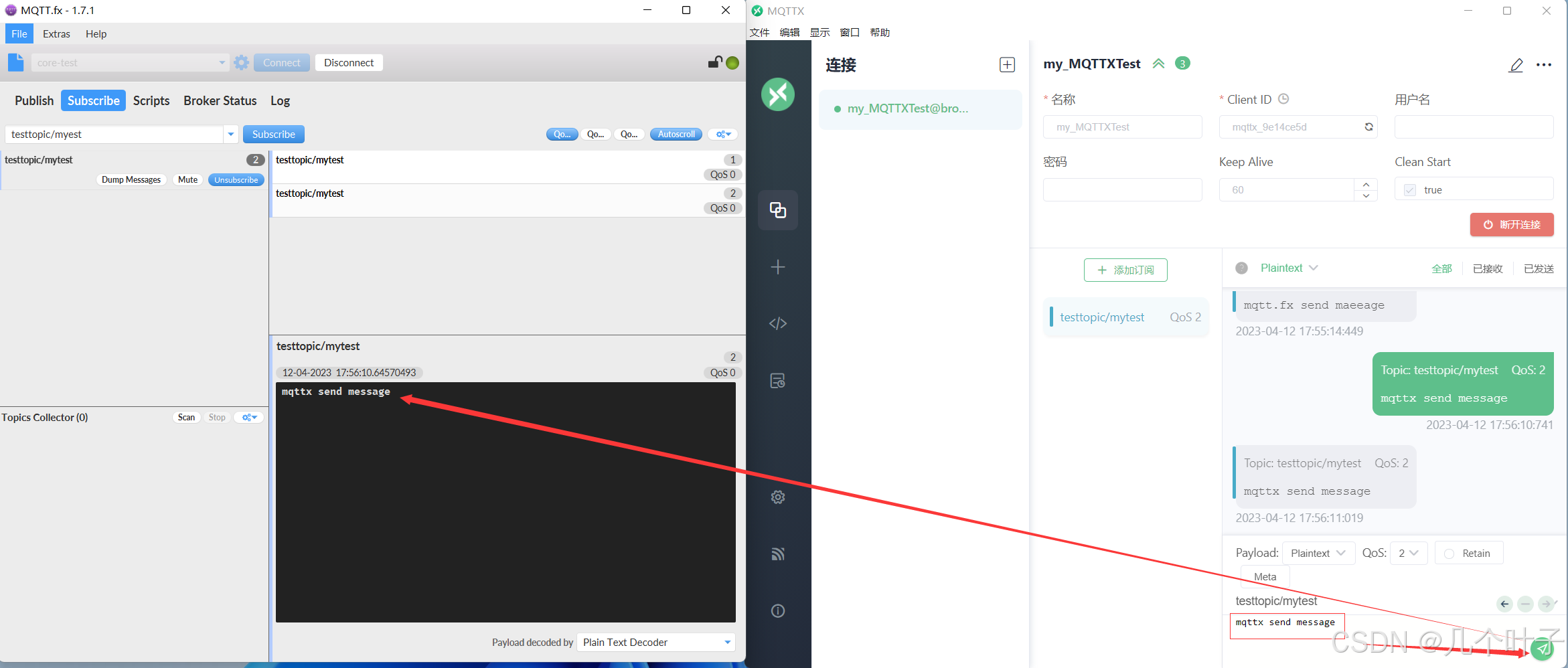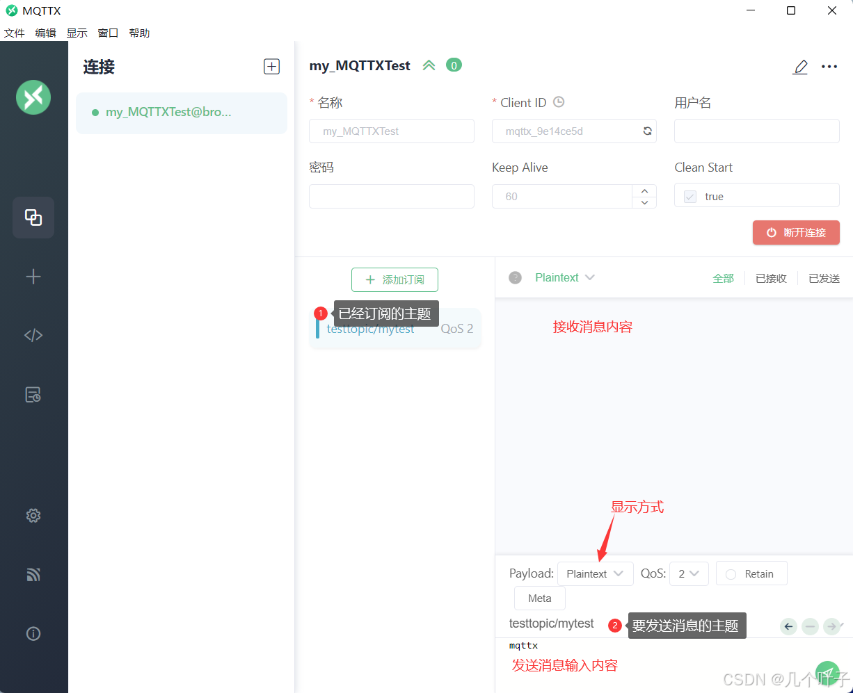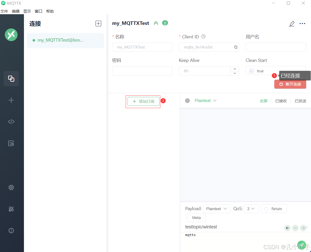 使用MQTTX订阅主题: