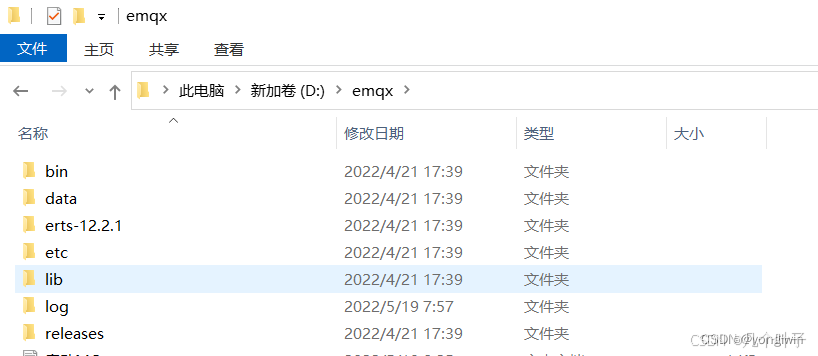 下载完毕之后解压,我们会得到一个EMQX的文件夹。