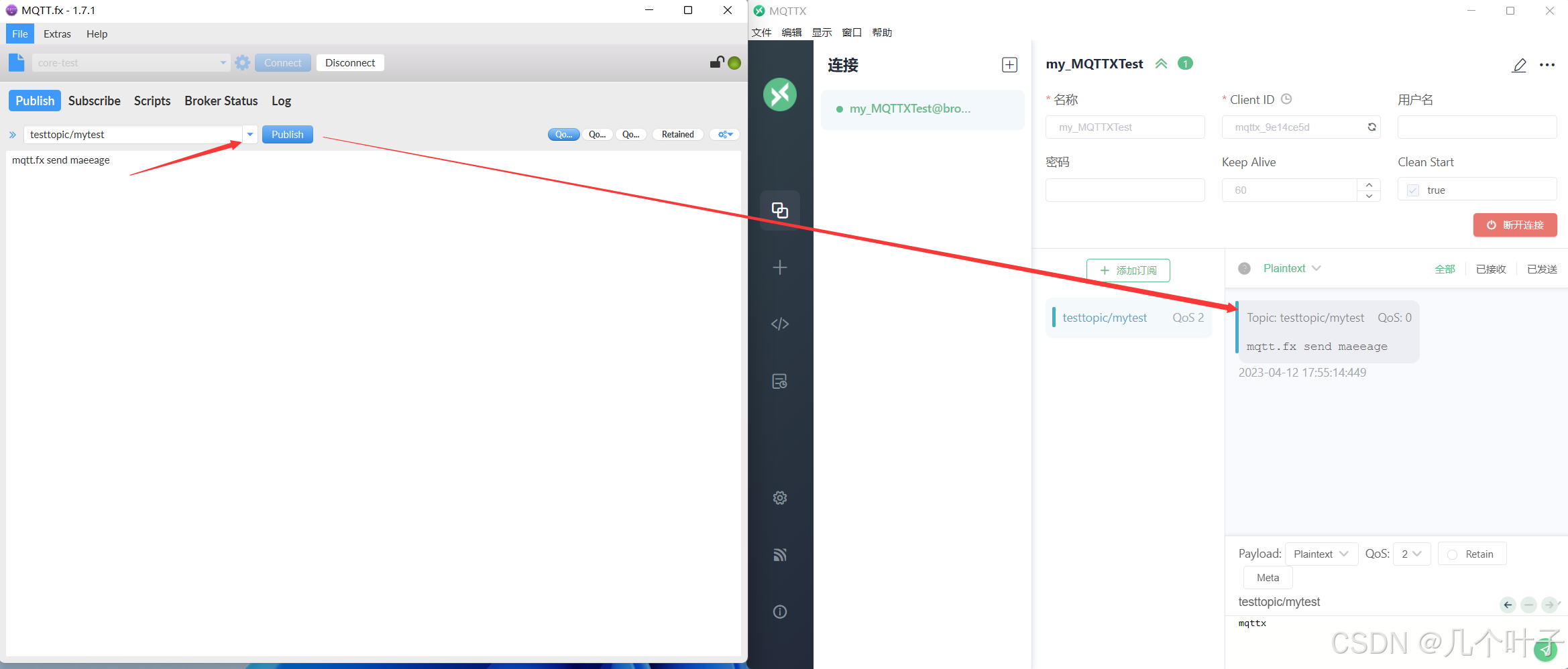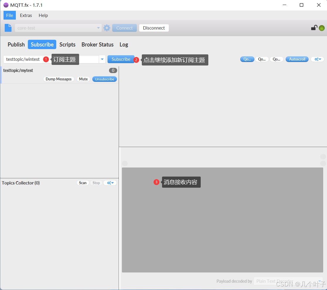 使用MQTT.fx订阅主题: