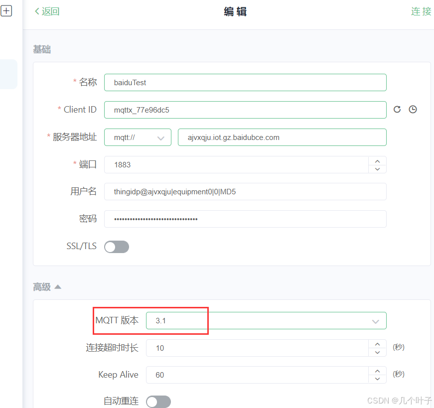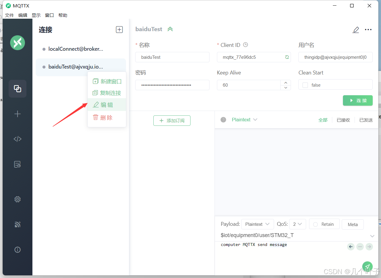 需要注意的是测试情况百度MQTT版本5.0是连接不上的,消息质量2也是无法发送和接收的。