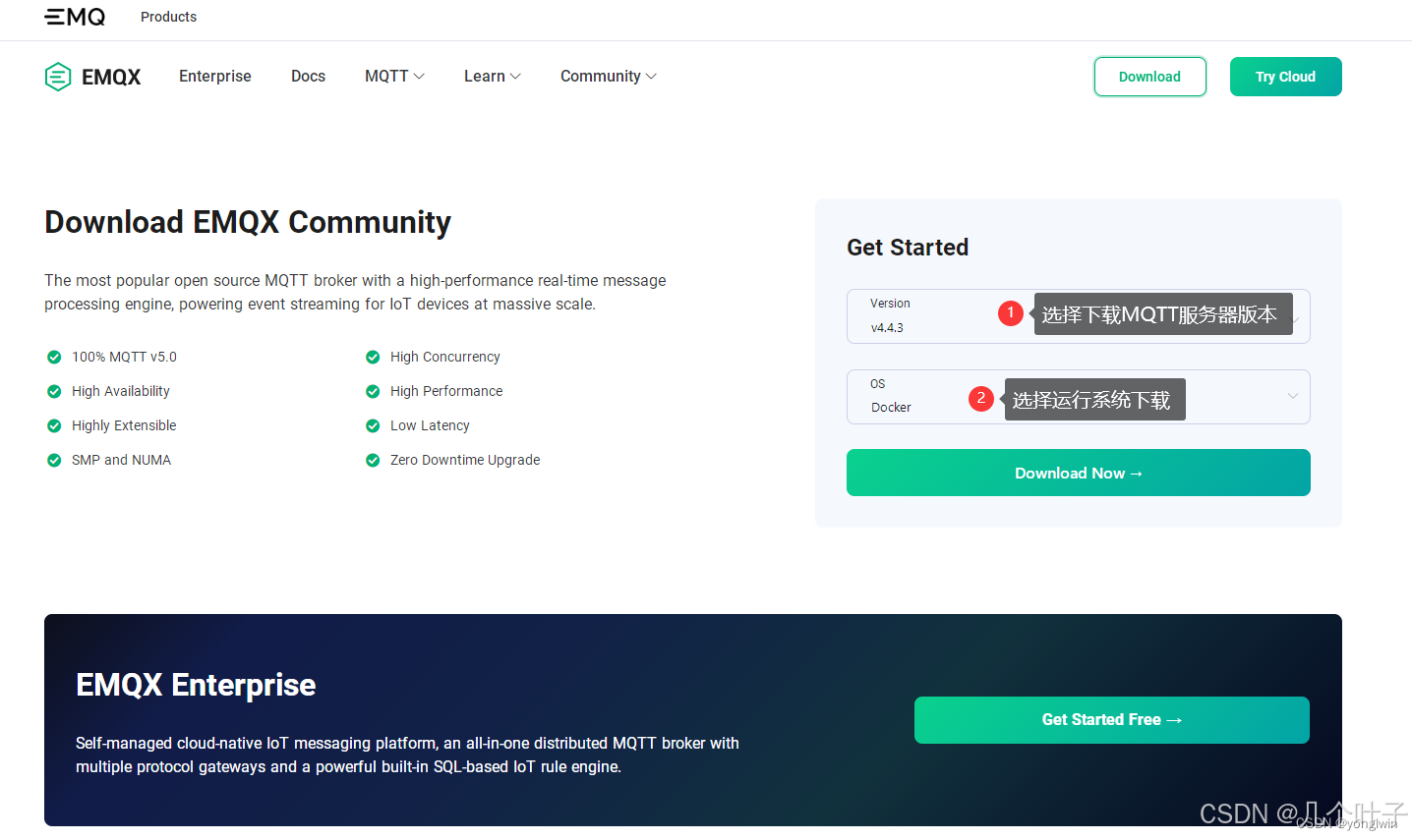 这里我们先下载一个Mqtt服务器,MQTT服务器有很多,我们这里以EMQX讲解