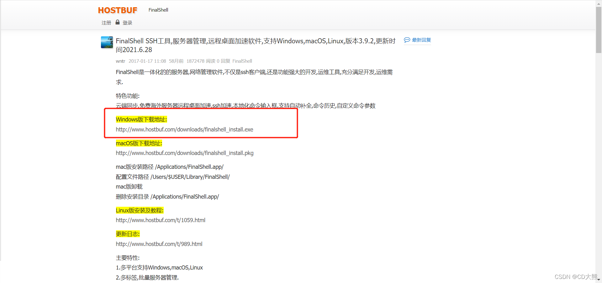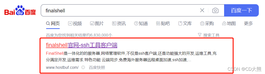 1.百度搜索finalshell,找到官网,点击进去