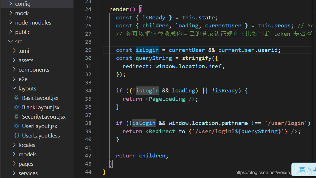 最关键的点在于isLogin这个变量,这个地方需要改成自己的逻辑(官方也给提示了,新创将的项目都有注释)