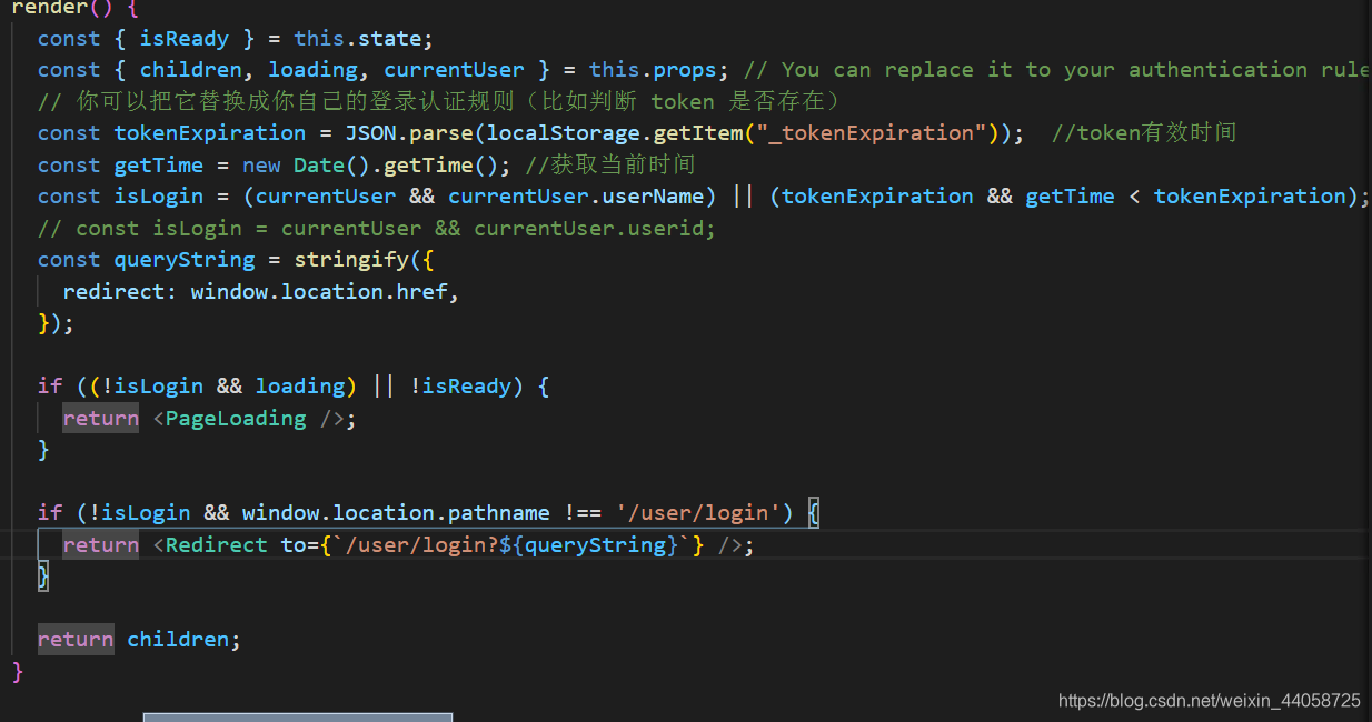 比如我的逻辑是当前currentUser.name是否存在并且token没超过有效时间。成立的话就展示页面,不成立并且当前页面不在登录页就重定向到登录页。