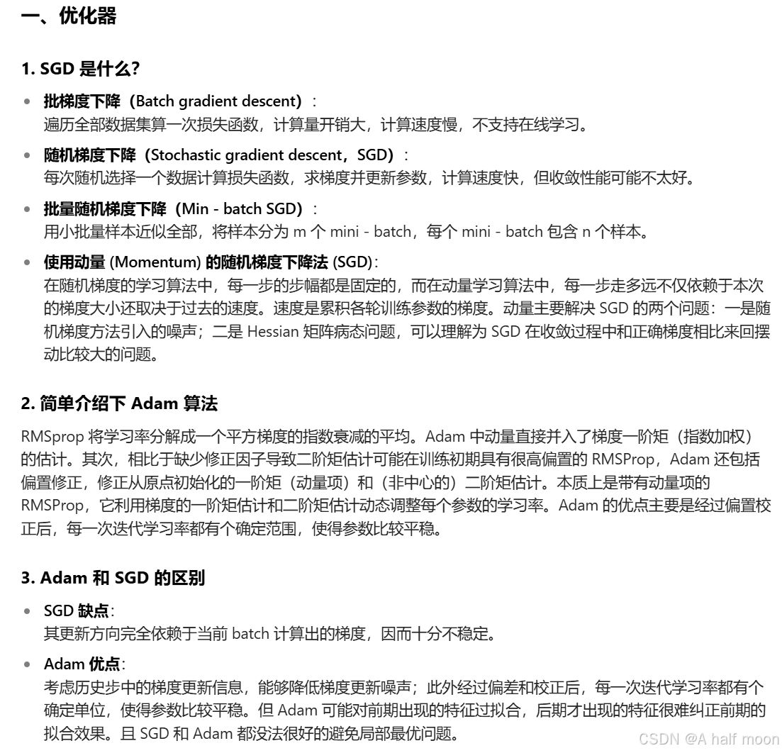 本文围绕深度学习核心知识展开,涵盖优化器(SGD、Adam 等)原理及对比,过拟合与欠拟合相关剖析,归一化方法(BN、LN 等)介绍,以及神经网络基础概念与应用,为深度学习面试及学习夯实基础。