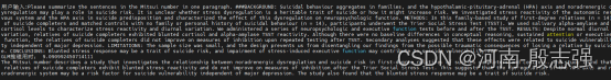 Based on the text generation patent and the partial writing recommendations, at least 6,000 words.\n Use the following format: \n technology field: ; Suggestions: \n Background: ; Suggestions: \n Overview of inventions: ; Suggestion: \n Invention content: ; Suggestions: \n implementation method: ; Suggestion: \n Patent requirements: ; Suggestion: \n Description requirement: ; Suggestion: \n Text: ###BACKGROUND: Suicidal behaviour aggregates in families, and the hypothalamic-pituitary-adrenal (HPA) axis and noradrenergic dysregulation may play a role in suicide risk. It is unclear whether stress dysregulation is a heritable trait of suicide or how it might increase risk. We investigated stress reactivity of the autonomic nervous system and the HPA axis in suicide predisposition and characterized the effect of this dysregulation on neuropsychologic function. METHODS: In this family-based study of first-degree relatives (n = 14) of suicide completers and matched controls with no family or personal history of suicidal behaviour (n = 14), participants underwent the Trier Social Stress Test (TSST). We used salivary alpha-amylase and cortisol levels to characterize stress reactivity and diurnal variation. We administered a series of neuropsychologic and executive function tests before and after the TSST. RESULTS: Despite normal diurnal variation, relatives of suicide completers exhibited blunted cortisol and alpha-amylase TSST reactivity. Although there were no baseline differences in conceptual reasoning, sustained attention or executive function, the relatives of suicide completers did not improve on measures of inhibition upon repeated testing after TSST. Secondary analyses suggested that these effects were related to suicide vulnerability independent of major depression. LIMITATIONS: The sample size was small, and the design prevents us from disentangling our findings from the possible traumatic consequences of losing a relative by suicide. CONCLUSIONS: Blunted stress response may be a trait of suicide risk, and impairment of stress-induced executive function may contribute to suicide vulnerability.###