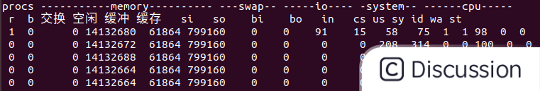 使用方法:在终端输入 vmstat 1,其中 1 是指定每秒更新一次信息。