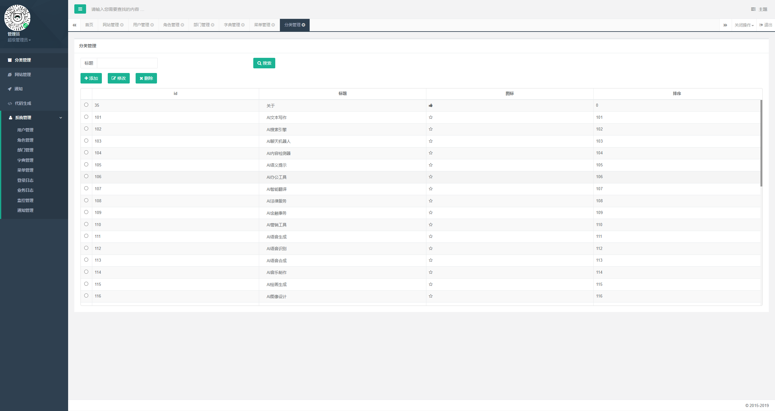 2023最新500+国内外AI工具墨鱼AI导航系统,包含Web+移动端带前后台+500+AI站点数据,小白也能即拿即用【源码+教程】 AI目前大火,估计未来3年内都将是风口。本系统墨鱼AI导航,顺着AI的风口,应运而生,系统具备前后台,有PC端和手机网页端。内置了500+国内外各类优质AI站点及工具,助你搭上人工智能浪潮,自动化高效完成任务,借助AI资源站点引流盈利。