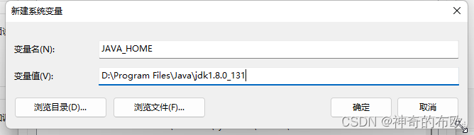 5. 变量名为JAVA_HOME,变量值为安装的JDK路径