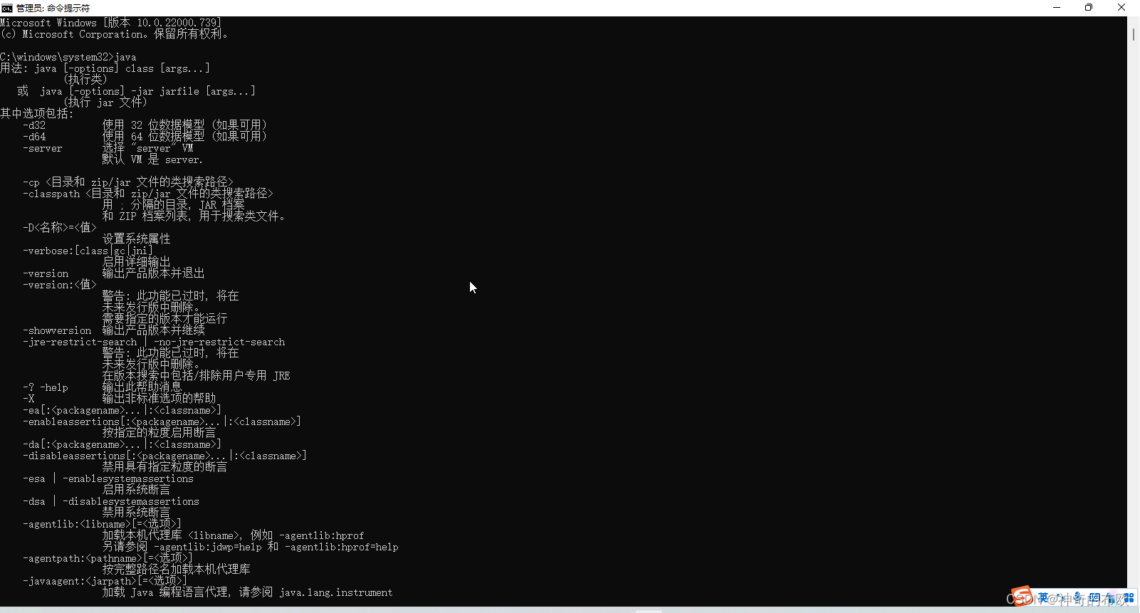 3. 输入java -version
