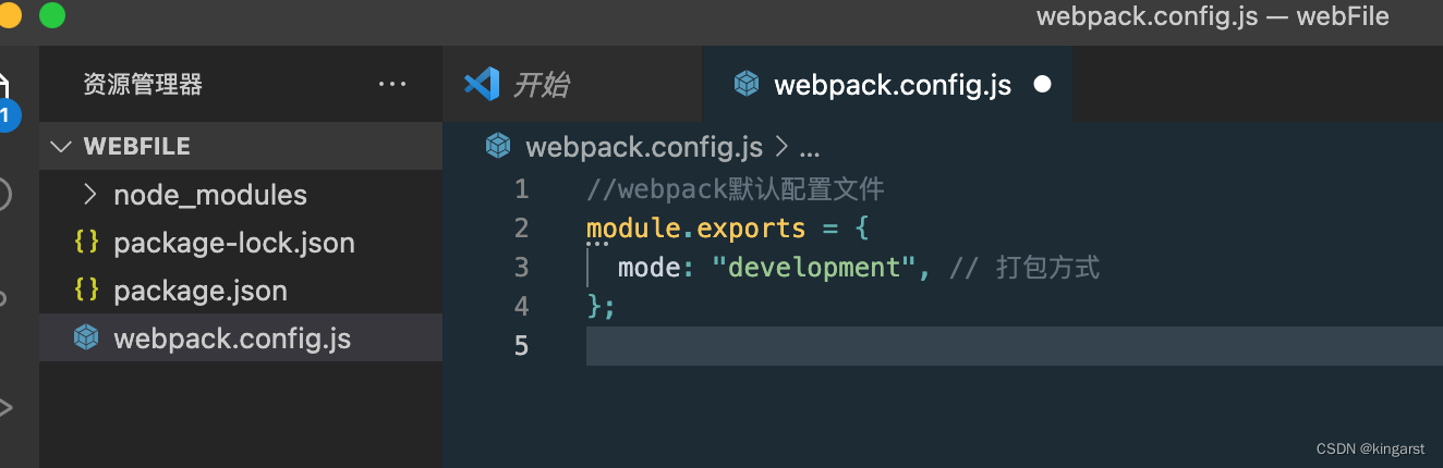 由于安装webpack后,没有自动帮我们创建webpack配置文件,需要我们手动新建,在项目根目录下创建一个名为 webpack.config.js ,内容如下: