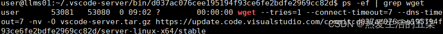 这时候发现ps -ef命令里面没有下载vscode的连接了,说明下载能正常进行。如下所示: