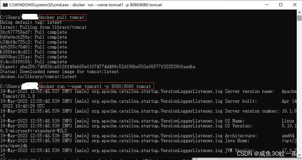 2.docker run --name tomcat1 -p 8080:8080 tomcat:创建tomcat容器