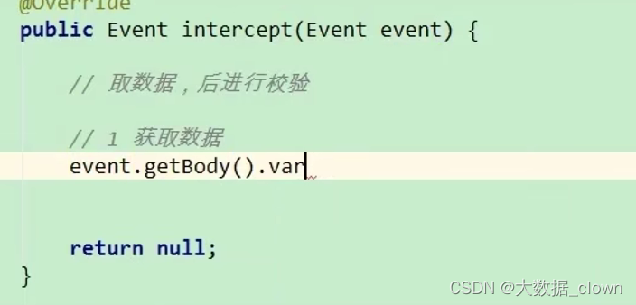 【面试】项目细节-flume采集数据细节 使用fastjson来判断JSON数据是否是“{”开头等,我们需要实现一个类,这个类继承了Interceptor类,需要实现初始化和close方法,单event处理和多event处理。根据上述配置,我们可以利用flume采集数据,将数据传入Kafka缓存区中,接下来,我们需要思考的问题是如果Kafka缓存区中的数据消费不到数据怎么办?我们该如何排查这个问题?接着我们需要校验数据,校验数据我们需要自己实现一个类,这个类是JSONUtils(自己实现),实现一个isValidate()方法。