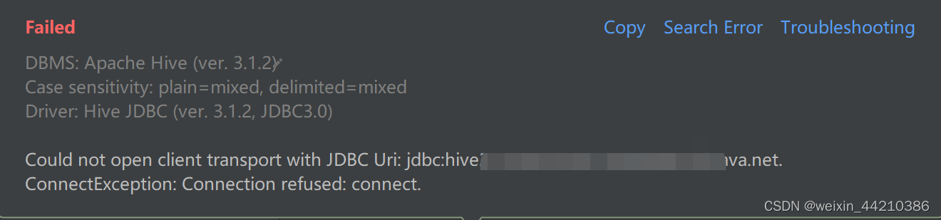 DataGrip无法连接上hive原因 需要注意的是在Hiveserver2启动的时候,需要等待所有的session_id都启动之后,才能够连接成功。此时要么是忘记启动hive,要么就是忘记启动了hiveserver2。启动之后就可以解决这个问题。