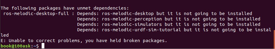 下面进行ROS安装sudo apt install ros-melodic-desktop-full时遇到错误: