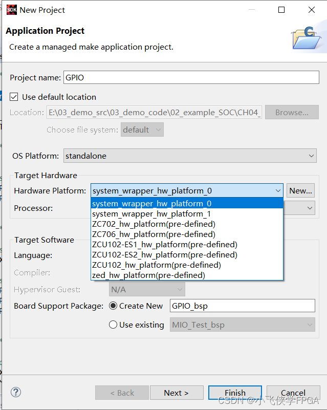 这一步选择硬件平台,就把现在要设计的软件和之前咱们设计的硬件联系起来了。创建完成后会得到两个文件夹