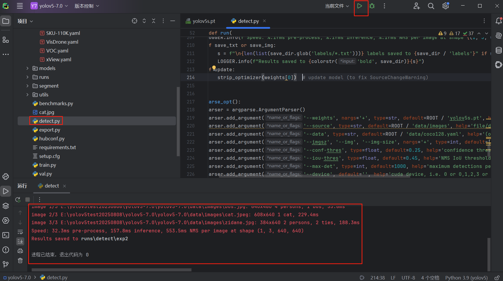 以上就是yolov5的环境配置及成功运行,下一篇将讲述如何训练自己的数据集并修改权重参数。