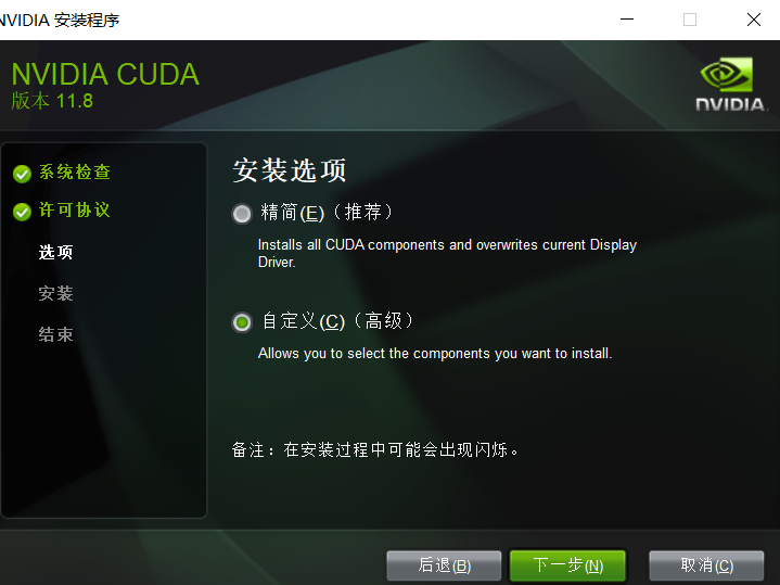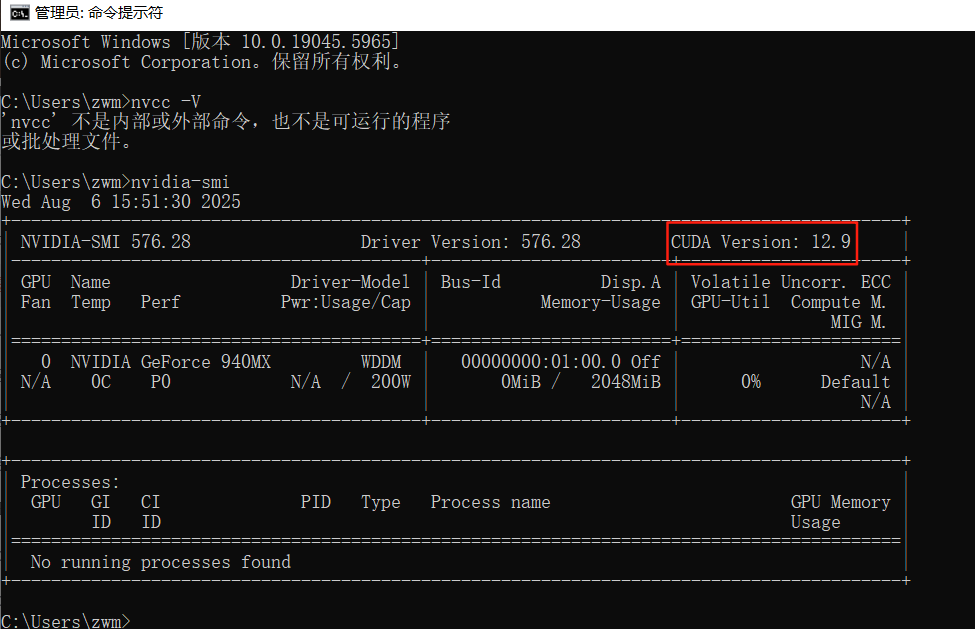 上图红框位置显示即为cuda最高支持版本,本教程最高版本达到11.8即可,若没有达到则需要更新显卡驱动。