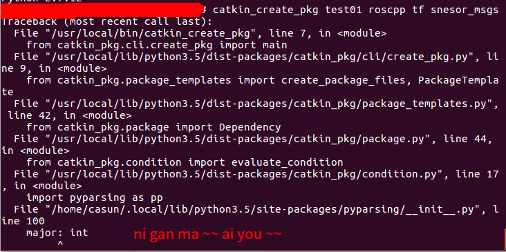 ROS catkin_create_pkg SyntaxError: invalid syntax 解决 ubuntu16.04在kinetic ros 版本下,使用catkin_create_pkg报错——符号错误。