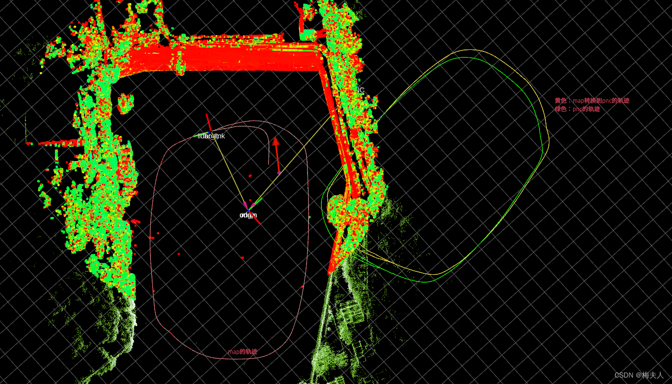 坐标系变换的坑 坐标系变换本来是很简单的事情,公式也很简单。但是卡了我很多天,原因是:两个坐标系的位姿,虽然都是右手系,但我的在顺时针旋转是yaw角是递增的,同事发给我的却是逆时针递减的。但这件事也教会了我一件事,不要把理论上的事情潜意识里当作大家都遵守。例如这次,我潜意识里默认大家都应该遵守右手坐标系,逆时针转动yaw角递增。将yaw角统一起来后,坐标系变换就正常了。理论上很简单的事情,搞了我那么久。看来工程是工程,理论是理论。后面问了copilot,最后一句提醒了我要检查一下yaw角。