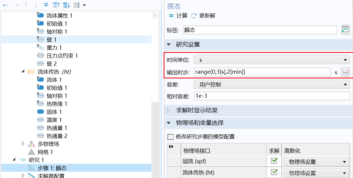这个问题中涉及到流体流动,以及传热。水的温度不是均匀的,根据教程,这里选择非等温流动接口。