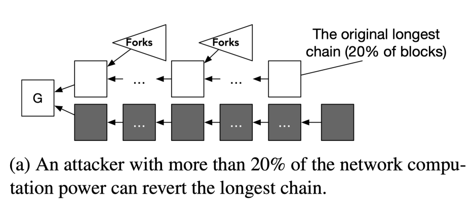 在中本聪协议中,过高的区块生成速率会导致大量的区块分叉,最长链增长速度缓慢,攻击者更容易构造一条侧链反超。