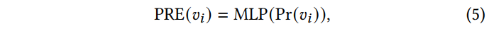 (3)基于Page Rank 的位置编码:在现实图中,不同的节点由于拓扑结构的不同而具有不同的重要性。Page Rank算法可以根据节点在图数据中的结构角色对其重要性进行标注,其中重要性越高的节点将被标记为页面Rank值越高的节点。对于节点𝑣i,将其页面秩值表示为Pr(𝑣i),基于页面秩的位置编码(PRE)为: