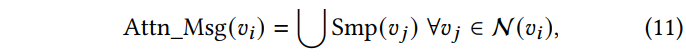 基于消息传递的更新:基于随机游动的更新策略有额外的开销。我们提出了另一种更新策略,利用GNN层的消息传递来更新样本,而没有额外的开销。具体来说,我们在GNN层的消息传递过程中,对每个中心节点的邻居节点的注意力样本进行聚合。这背后的直觉是,邻居的注意力样本也可能是中心节点的相关注意力样本。我们将相邻节点的关注样本集表示为关注消息,其定义如下: