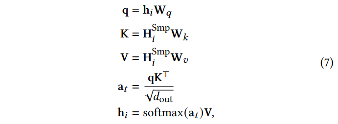 注意力采样:给定输入图 G 及其相似度矩阵 S,对于图中的节点 𝑣𝑖,我们将其注意力样本定义为集合 Smp(𝑣𝑖) = {𝑣𝑗 |𝑣𝑗 ∈ 𝑉 和 𝑆(𝑖, 𝑗) ∈ top-k (𝑆(𝑖, :))} 其中𝑆(𝑖, :) 表示 S 的第 𝑖 行,𝑘 作为超参数,决定应该关注多少个节点。