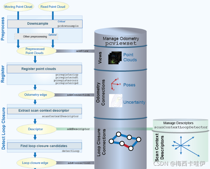 校准与传感器融合大多数现代自动或半自动驾驶汽车都配备了包含多个传感器的传感器套件。有必要建立这些传感器之间的几何对应关系,以理解和关联输出数据。为了校准和融合来自这些传感器的数据,需要进行旋转和平移变换。将激光雷达数据与相应的摄像机数据融合在感知管道中特别有用。激光雷达和摄像机校准(LCC)工作流程就是为此服务的。采用棋盘格模式标定方法。要了解更多信息,请参阅什么是激光雷达摄像机校准?激光雷达工具箱™算法提供从图像和点云提取棋盘特征的功能,并使用它们来估计相机和激光雷达传感器之间的转换。工具箱还提供