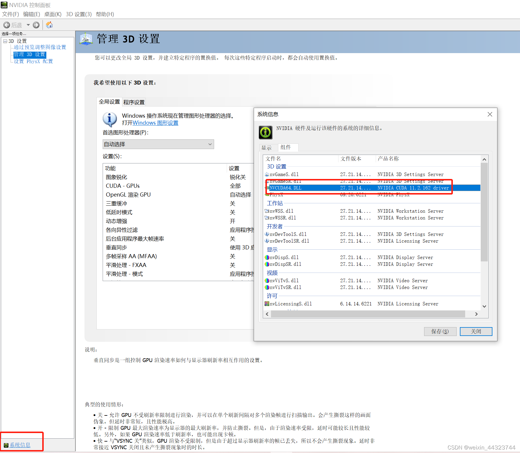 打开nvidia控制面板-->左下角的‘系统信息’-->第三行就是自己电脑支持的CUDA版本
