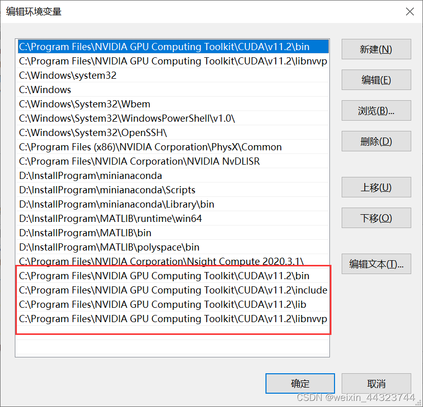将这四个文件复制到CUDA的安装目录下,可以将文件内容复制过去。