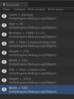 Debug.Log("Width = " + jdItems[i]["Width"]);