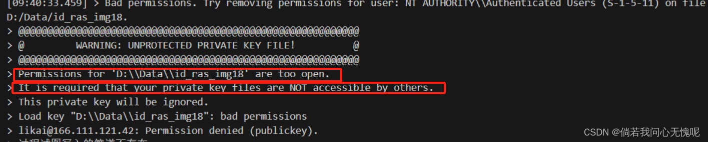 Windows 使用VSCode远程连接服务器失败提示Permissions for ‘ ‘ are too open . 在密钥文件右键 → 属性 → 安全 → 高级 → 更改所有者为你自己 → 禁用继承(如有提示选第一个) → 把权限条目中的主题全部删除只剩你自己。大致意思是:许可文件的权限太开放了,密钥文件需要禁止其他用户访问。windows11系统操作步骤如下。