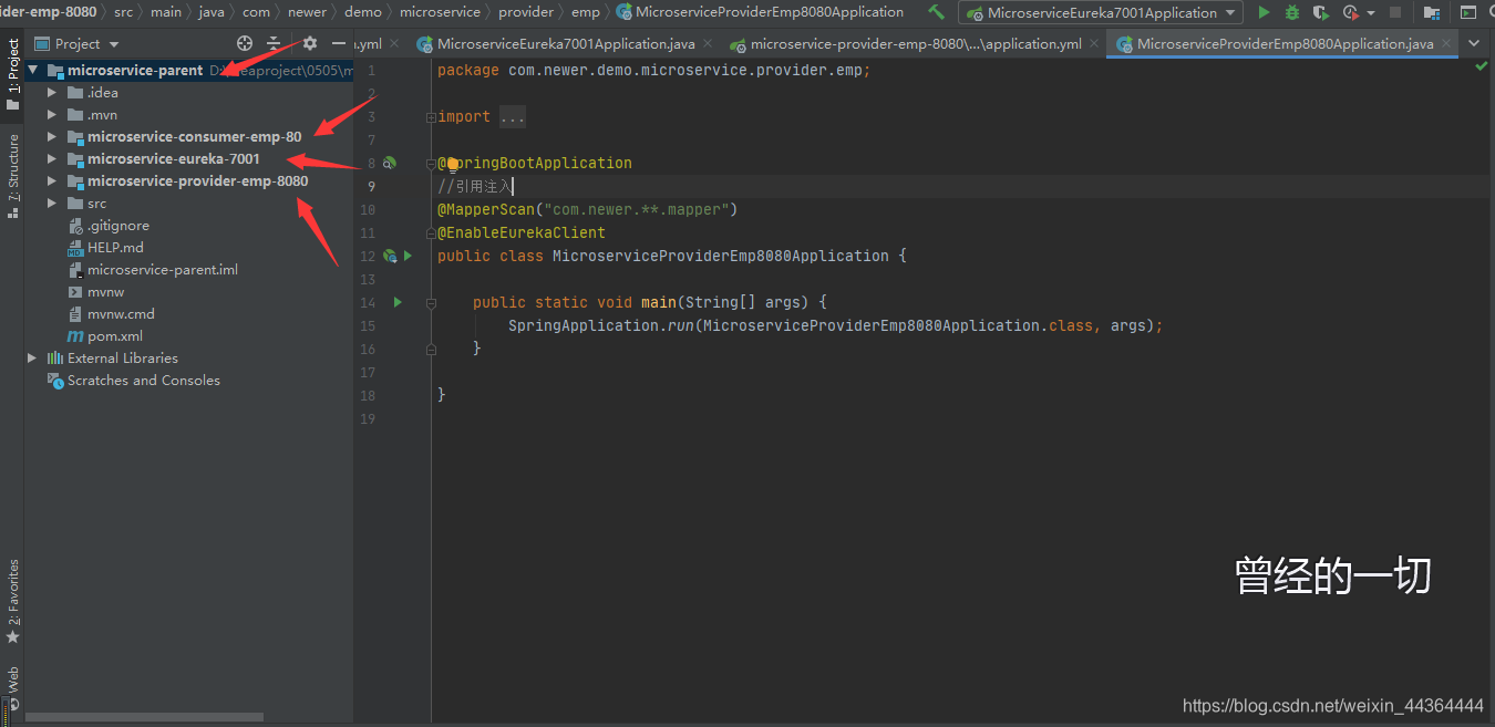 创建好的子模块如图所示:microservice-parent下有三个子模块。