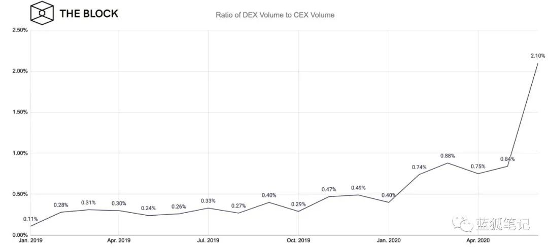 DEX的交易量从无足轻重到如今超过CEX的2%