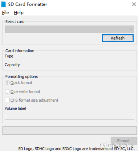 2、格式化SD卡,用工具SD Card Formatter,选择对应的盘符