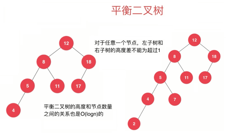 平衡二叉树:对于任意一个节点,左子树和右子树的高度差都不能超过1。