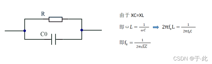 2.等效电路并联谐振(并联谐振频率fL):此时串联支路呈现为感抗,相当于一个电感,其并联谐振等效电路如下: