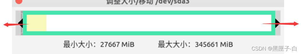 a.右击/dev/sda3(就是选择未分配空间附近的分区),选择“resize/move”(调整大小/移动);