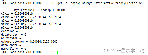 (5)去zkCli.sh 客户端查看ResourceManager选举锁节点内容: