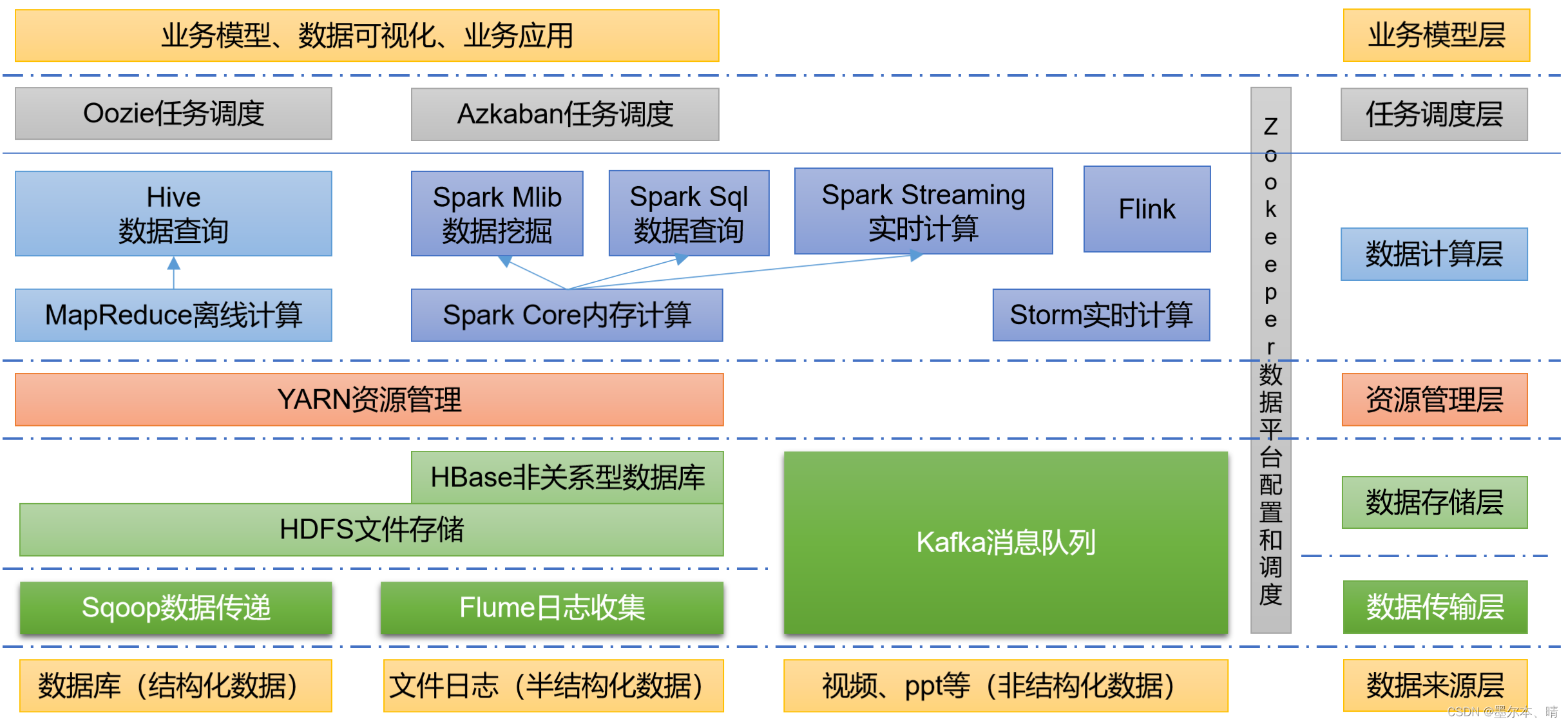广义上来说,Hadoop通常是指一个更广泛的概念——Hadoop生态圈。