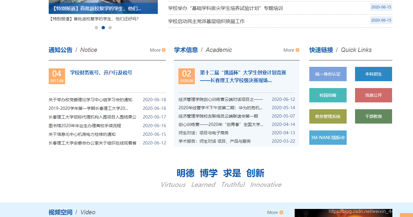 长春理工大学官网使用的的基本技术有HTML,JS,CSS,JQuery和Apache服务器开发。前三个是基本的前端三板斧。Apache HTTP Server(简称Apache)是Apache软件基金会的一个开放源码的网页服务器,可以在大多数计算机操作系统中运行,由于其多平台和安全性被广泛使用,是最流行的Web服务器端软件之一。jQuery是一个快速、简洁的JavaScript框架,是继Prototype之后又一个优秀的JavaScript代码库(或JavaScript框架)。jQuery设计的宗旨是“write Less,Do More”,即倡导写更少的代码,做更多的事情。它封装JavaScript常用的功能代码,提供一种简便的JavaScript设计模式,优化HTML文档操作、事件处理、动画设计和Ajax交互。通过它操作,确实比原生js要方便许多。详细的比较可以参考链接https://www.iteye.com/news/26230。