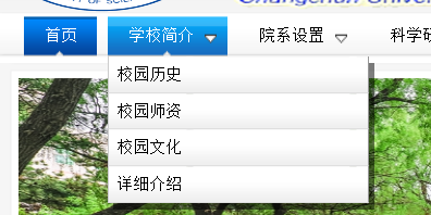 采用a标签进行组织。同时嵌入无序列表的组合。当我们点击学校简介,它会展示下属列表。部分代码结构