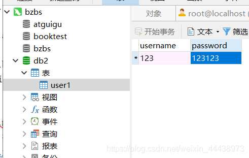 。数据库的表结构非常简单就是一个用户名一个密码。